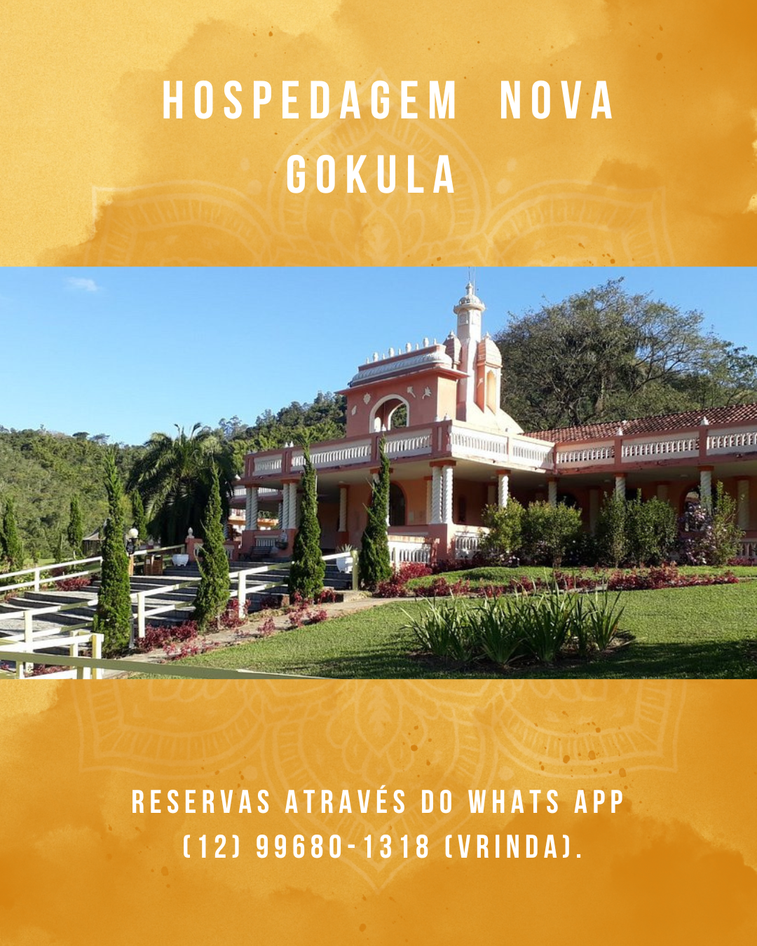 Para informações sobre hospedagens em Nova Gokula e ou nas proximidades da Fazenda, contacte nossa Central de Reservas através do whats app (12)99680 1318 (Vrinda).