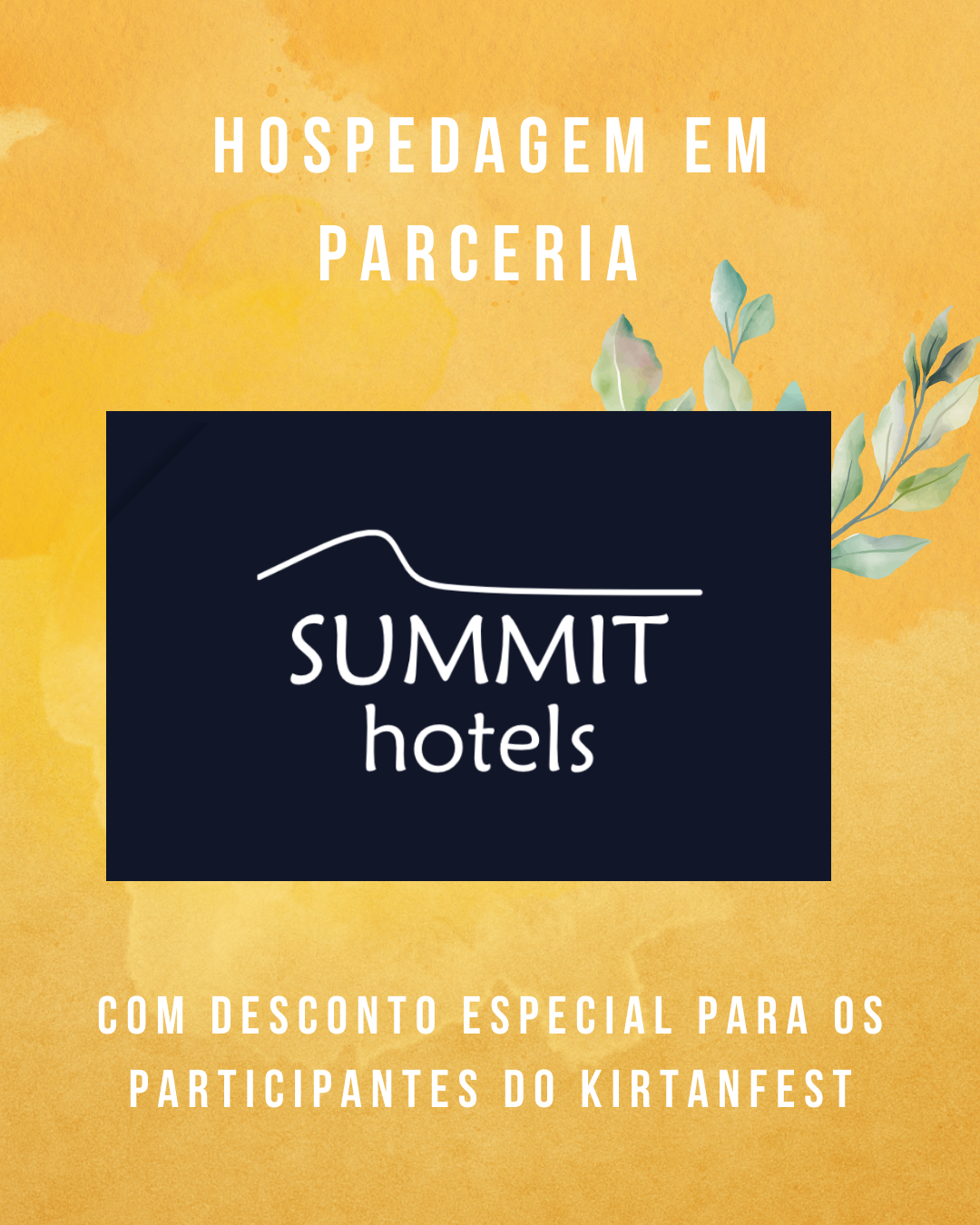 Ainda recomendamos, caso as opções de hospedagens em Nova Gokula já estejam finalizadas, o Hotel Summit no Centro de Pindamonhangaba (21km da Fazenda Nova Gokula) ou cerca de 25min de carro. O Hotel fornece café da manhã incluso na diária e ainda concede um desconto para participantes do evento.